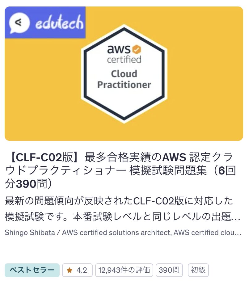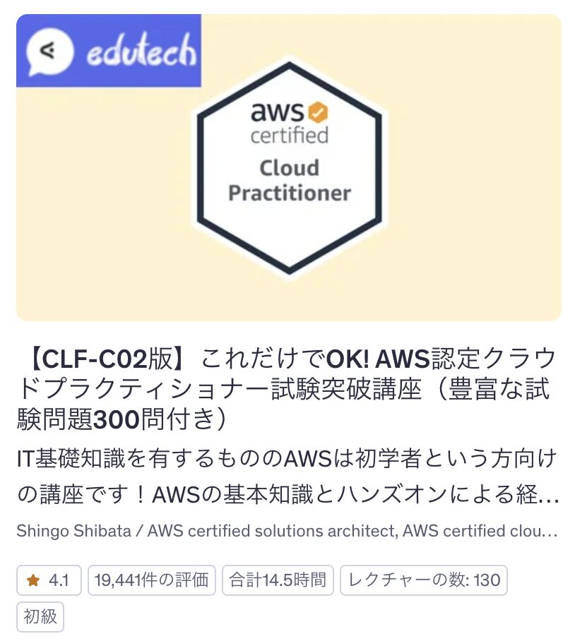 クラウドプラクティショナー試験の対策講座はこちらの講座がおすすめです!
