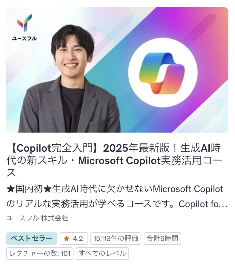 僕自身毎日Copilotを使ってますが、基礎を学ぶにはこちらの講座がとてもわかりやすくておすすめです。