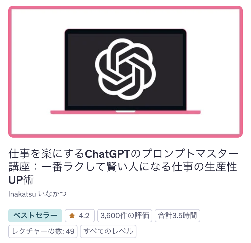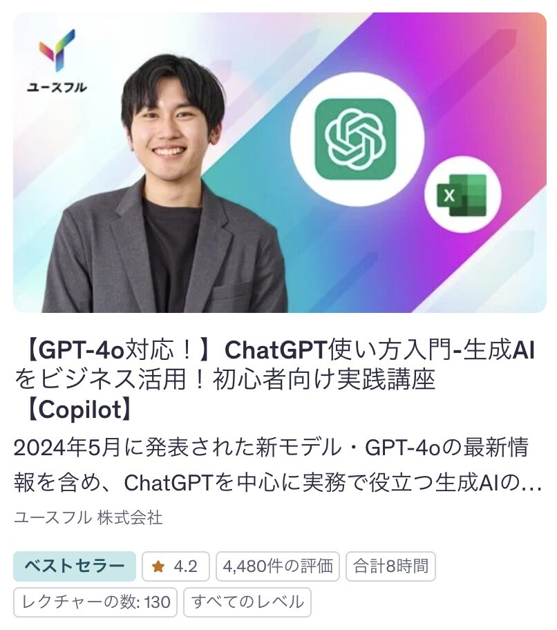 - UdemyのChatGPTおすすめ講座を知りたい