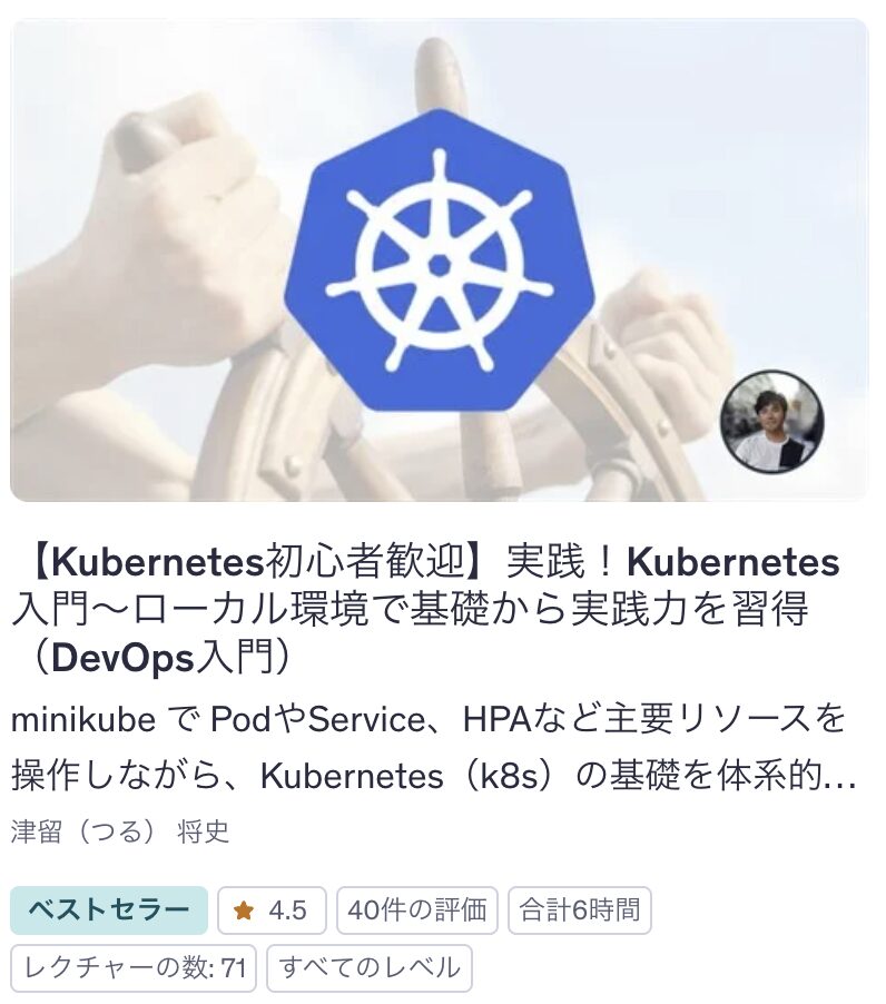 この記事で紹介したDocker講座で学んでいれば、Kubernetes講座の理解も深まるかと。