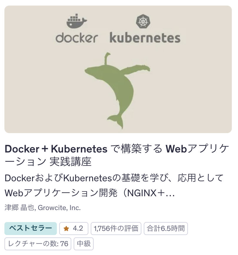 中級者向けの講座なので、これまでに紹介したDocker講座を終えてから学んでいくとオススメです。