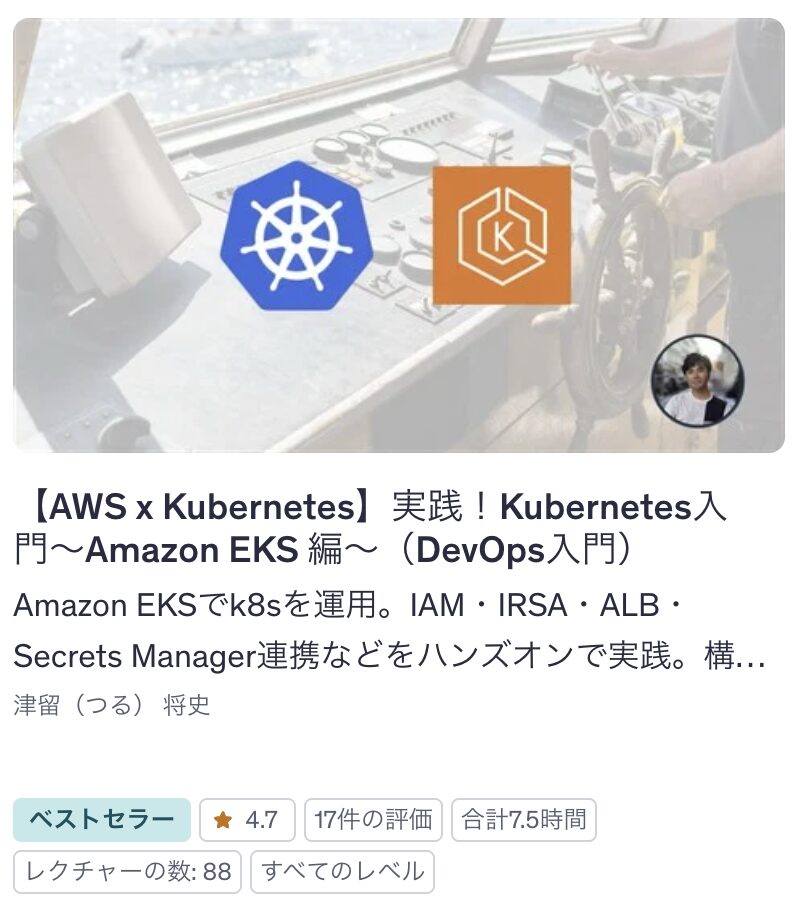kubernetesを学んだ方やEKS学びたい方はこちらの講座がおすすめです。