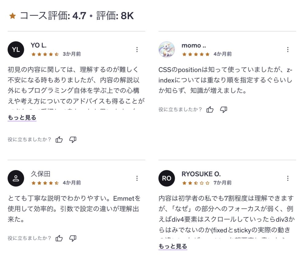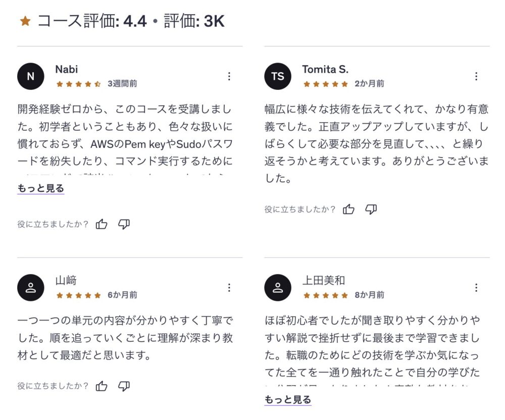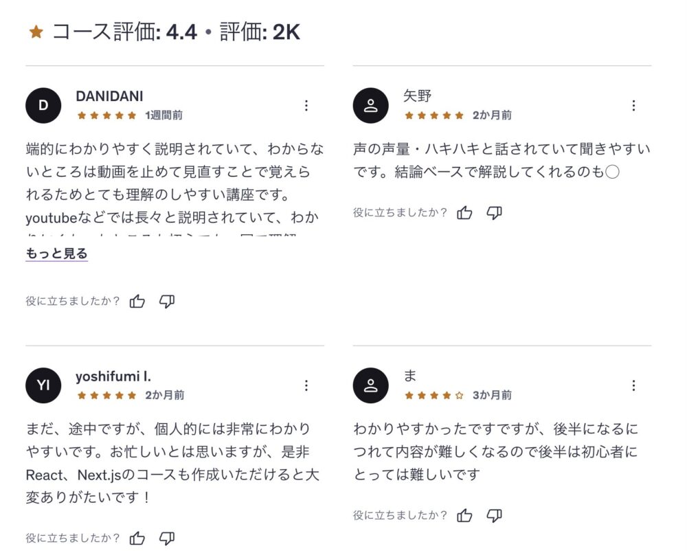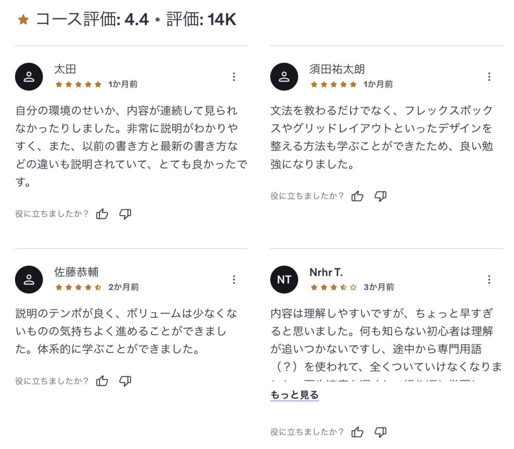 こういった講座をセール時に1,000円代で購入できるのがUdemyの良いところですね。
