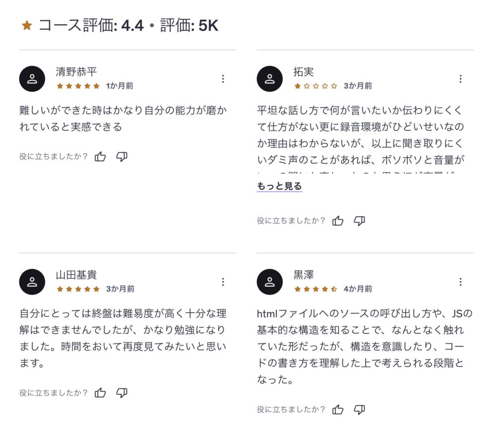 評価が4以上の高評価で、1,000人以上の購入者がいる人気講座だけを厳選しました。