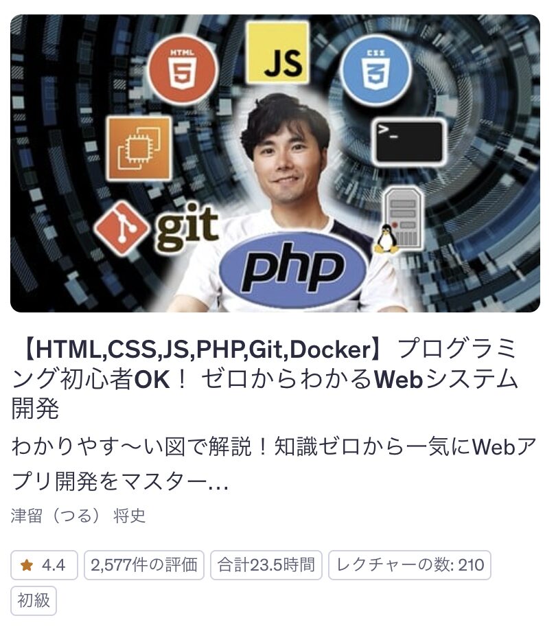 ⑤:【HTML,CSS,JS,PHP,Git,Docker】ゼロからわかるWebシステム開発