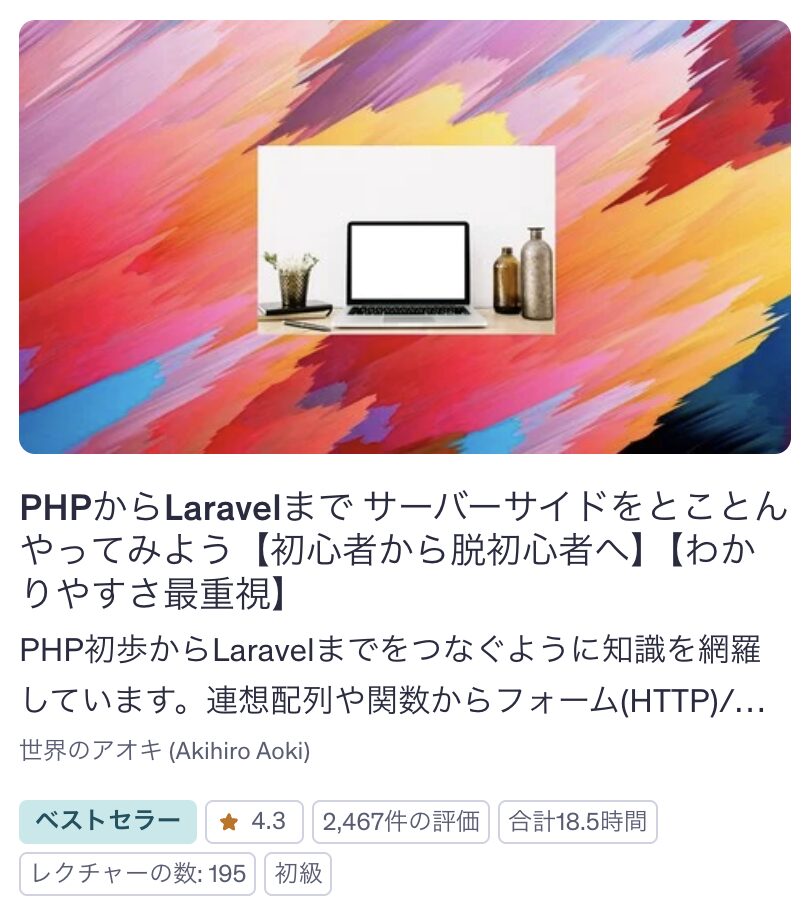 ではさっそくUdemyのオススメPHPと、Laravel講座に分けてご紹介していきます!
