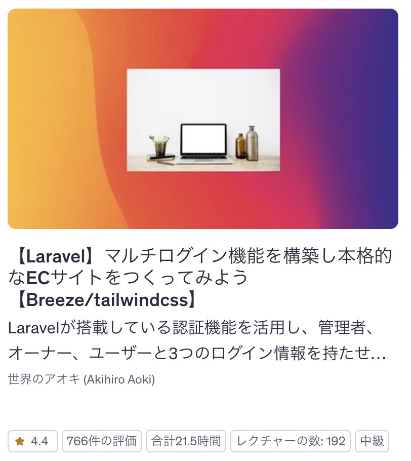 PHPで最も人気であるフレームワークのLaravel講座もUdemyにはあります。