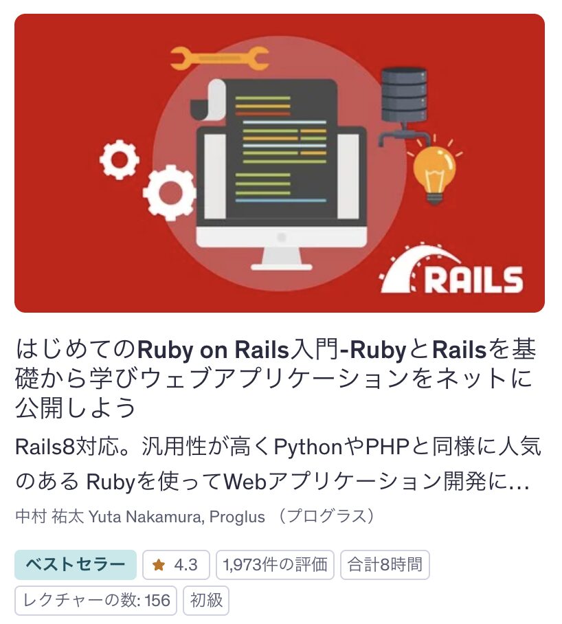 RubyやフレームワークのRuby on Railsを学びたい方に、Udemy講座はかなりおすすめです。