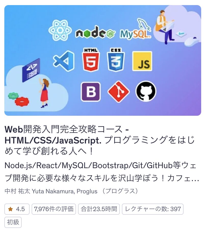 HTMLやCSSを学んだことがない方は、こちらの講座を先に受講するのがオススメです。